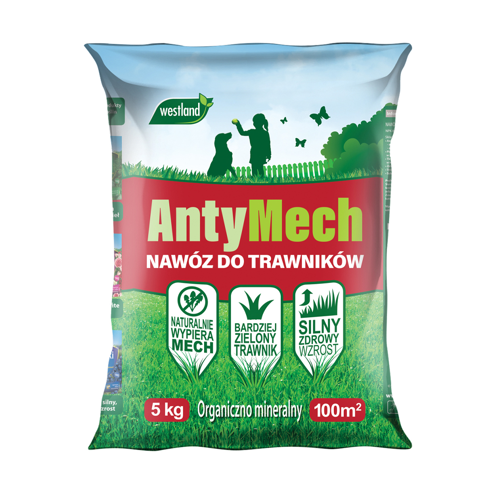 Nawóz do trawników ANTYMECH to wieloskładnikowy nawóz granulowany przeznaczony do ochrony trawników przed występowaniem mchu.