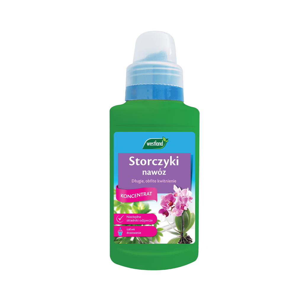 Storczyki nawóz płynny Westland to doskonale zbilansowany nawóz. Wzbogacony mikroskładnikami pokarmowymi niezbednymi dla utrzymania dobrej kondycji roślin. Wspomaga silny zdrowy wzrost oraz przedłuża okres kwitnienia.